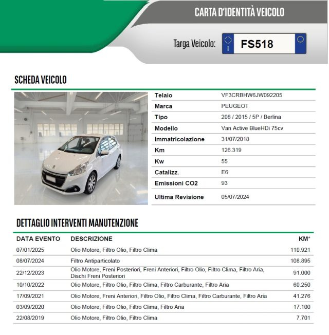 🚗 PEUGEOT 208 VAN ACTIVE BlueHDi 75 CV – AUTOCARRO 2 POSTI 📅 Immatricolazione: 31/07/2018