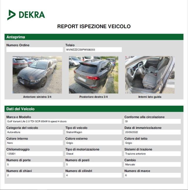 VOLKSWAGEN GOLF VARIANT 2.0 TDI LIFE 115 CV – 09/2022 – EURO 6 🚗✨ 📅 Immatricolazione: 20/09/2022